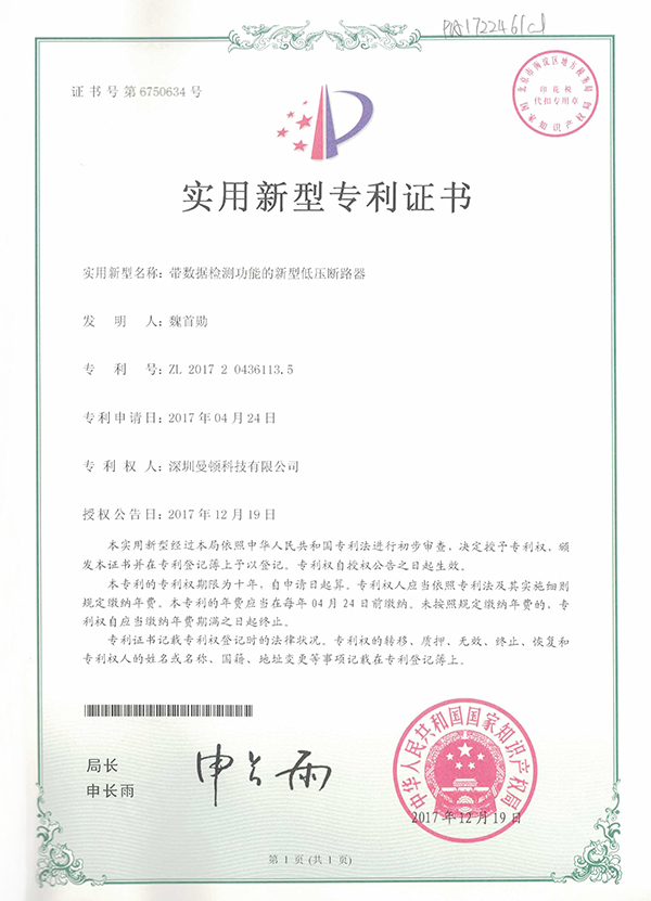 ÊÊÓÃÐÂÐÍ-´øÊý¾Ý¼ì²â¹¦Ð§µÄÐÂÐ͵Íѹ¶Ï·Æ÷Ö¤Êé